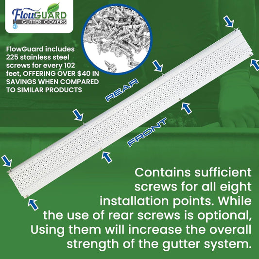 Say goodbye to chasing gutter guards blown into your neighbor's yard after storms! FlowGuard is a permanent and secure upgrade to your gutter system. Mounted with stainless steel fasteners, it delivers a solid, lasting fit that stays in place, providing reliable, year-round protection year after year.