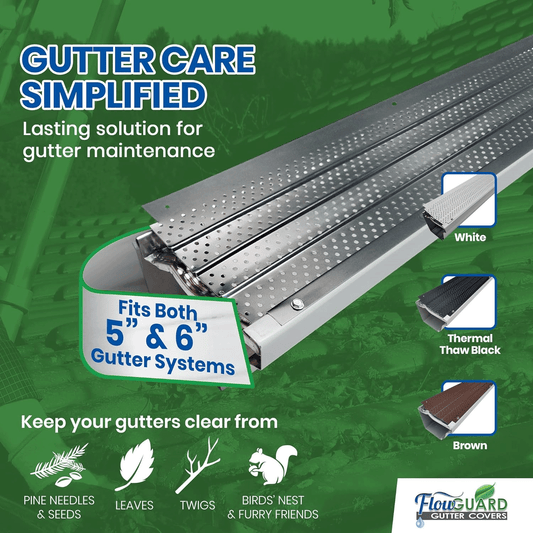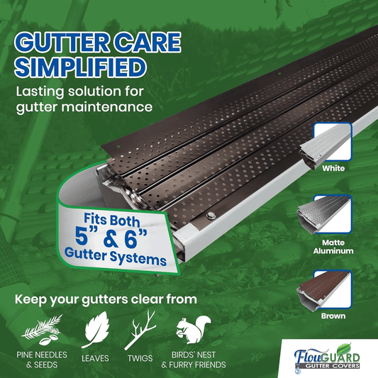 5" 6" SLIP UNDER FlowGuard USA Made Slip Under Shingle Professional DIY Universal 5 Inch & 6 Inch 50-Year Gutter Cover System - Matte - Aluminum Gutter Guards