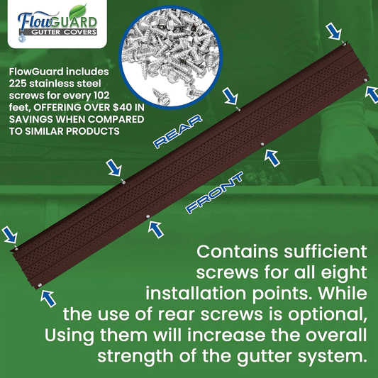 6"COMMERCIAL FlowGuard USA Made Professional DIY 6 Inch 50-Year Gutter Cover System - Brown - Aluminum Gutter Guards